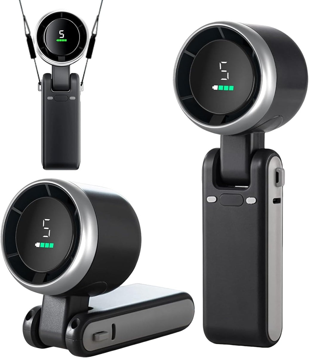 Mantente fresco en cualquier lugar con este moderno ventilador portátil de diseño plegable. Compacto, elegante y con pantalla digital inteligente que muestra velocidad y nivel de batería para un control total. Perfecto para trabajo, viajes, actividades al aire libre o uso en casa.